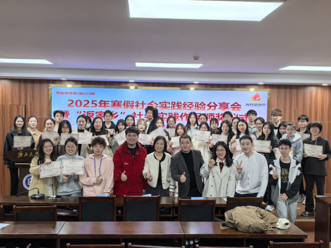 为充分展现学院寒假社会实践活动的丰富成果,表彰和鼓励在社会实践中表现突出的优秀实践者,3月18日晚成人动漫 寒假社会实践经验分享会暨“返家乡”社会实践作品颁奖仪式在学院604会议室举行。学院党委副书记、纪委书记孙玲,学院团委书记徐羽,团委副书记卓能聪,辅导员刘宇、曹羚彬以及全体获奖学生参加会议。会议由学院团委组织部负责人李林玲主持。会议伊始,徐羽、卓能聪、刘宇三位老师为获奖学生颁发荣誉证书,并一同合影留念...