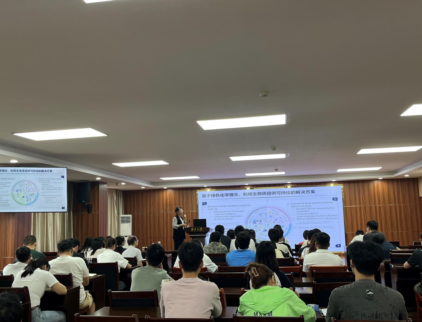王蕾教授首先从生物质研究现状出发,阐述了绿色溶剂体系的开发与其在生物质炼制领域的应用,包括基于生物基溶剂异山梨醇二甲基醚(DMI)的生物质高效解构预处理技术,实现了木质素高脱除效率和高活性键含量的兼顾;反应型低共熔溶剂(DES)用于生物质纤维素组分提取和改性;基于导电DES体系的生物质预处理和溶剂回收工艺路线。同时王蕾教授讲解了DES体系的电化学性质,为DES体系在生物质炼制领域的应用提供新思路和工艺。最后王蕾教授提出了耦合化工过程模拟的前瞻性生命周期评价方法,为生物质精炼乃至更加广泛的固废资源化利用、绿色化工的可持续发展提供方法论和工具。报告结束,王蕾教授给大家介绍了西湖大学这所国家重点支持的民办新型研究型大学,西湖大学主要以博士研究生培养为起点,着力培养富有社会责任感的拔尖创新人才,目前正通过“申请—考核”制选拔非定向博士研究生,王蕾教授表示非常欢迎成人动漫