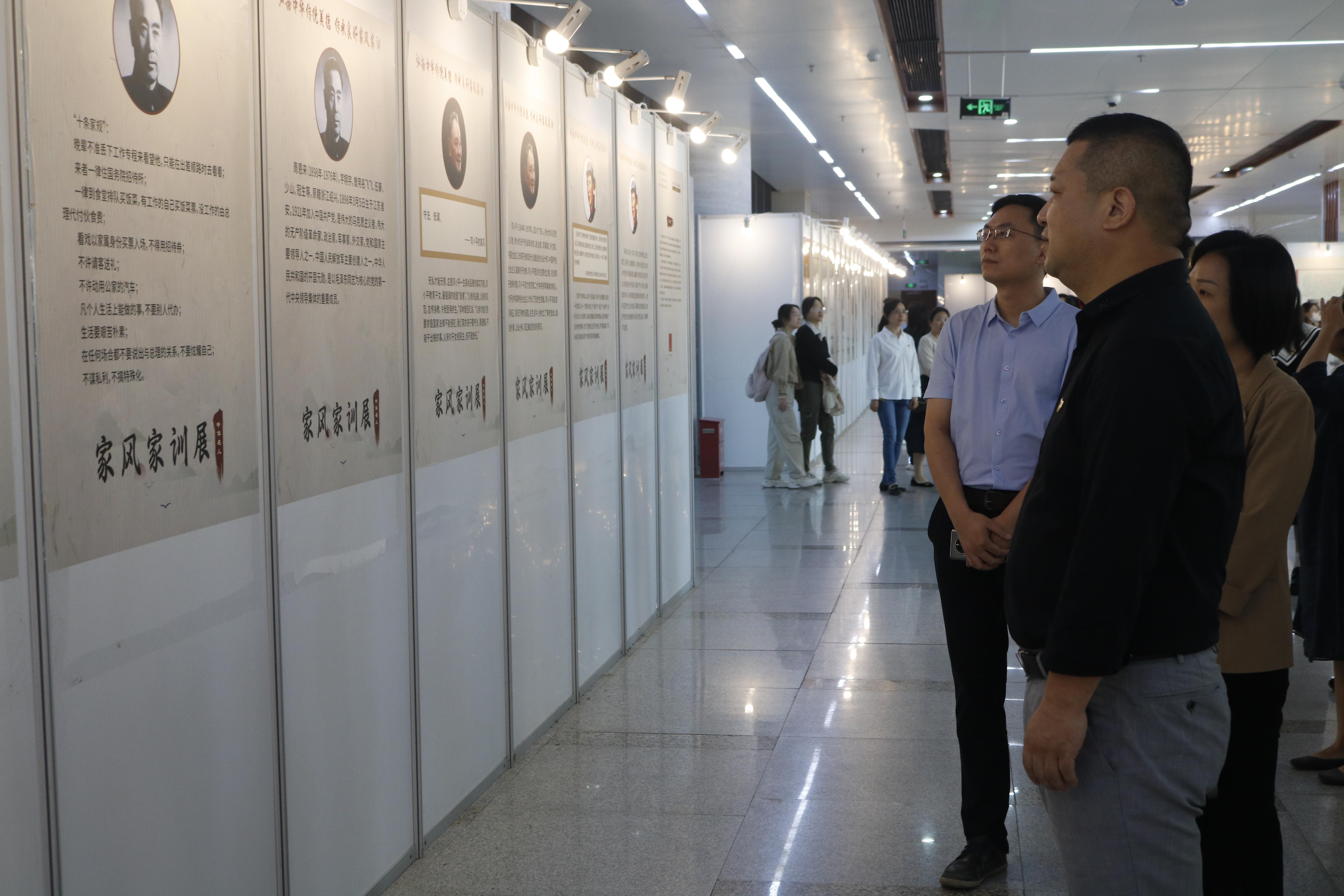 参观中,师生党员代表认真观看展板,仔细了解名人家风家训的深刻内涵和现实意义,尤其是家训的现代化转化和时代价值。通过研读历史、政治、文化名人孝义、尊师、敬老、爱国的经典家训内容,深刻认识到家风家训是中国传统文化中引领民风、教化人心的重要内容。学院师生党员协同参观,相互交流,在学习中受到启发和感召,增强了传承优良家风家训、严守党员身份、为学院的发展贡献力量的党员信念。