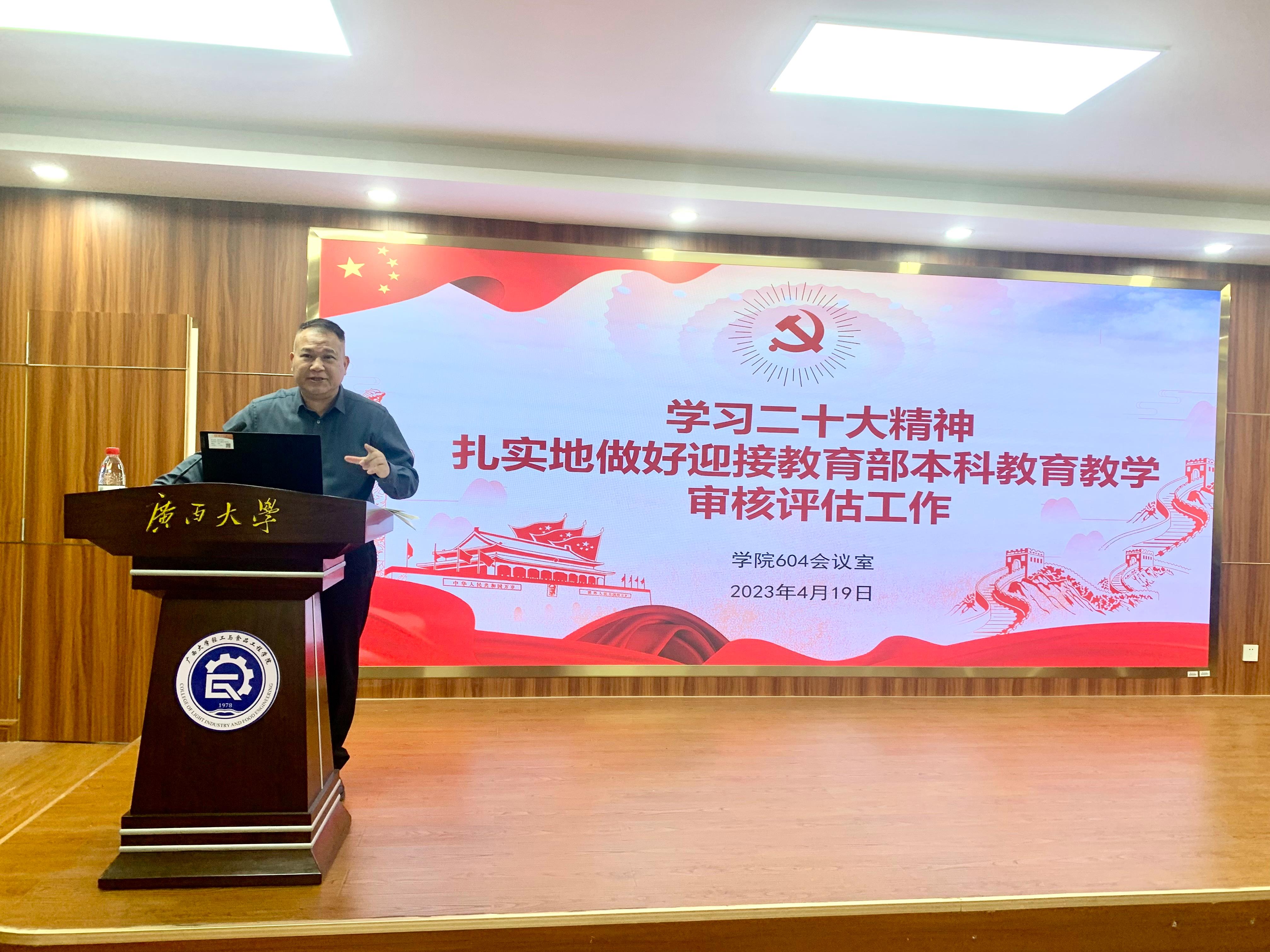 许树沛强调,党的二十大报告指出,要坚持“实施科教兴国战略,强化现代化建设人才支撑”。本科教育教学审核评估工作是实施科教兴国战略的一个重要举措,是在推动党中央重大决策部署和习近平总书记重要指示精神贯彻落实上进一步做实的重要举措,也是在推动自治区党委和学校党委的战略部署贯彻落实上的重要举措。站在新的征程上,学院全体师生员工要在全面学习、全面把握、全面落实上下功夫,切实把学习宣传贯彻党的二十大精神不断引向深入,要充分认识学习贯彻党的二十大精神重大意义,全面贯彻习近平新时代中国特色社会主义思想,深入学习习近平总书记近期重要讲话精神,深刻领会党的二十大精神的丰富内涵、精髓要义、实践要求,深刻领悟“两个确立”的决定性意义,进一步增强“四个意识”、坚定“四个自信”、做到“两个维护”,不断提高政治判断力、政治领悟力、政治执行力,切实把思想和行动统一到党的二十大精神上来,履职尽责、奋发有为,求真务实、克难奋进,不断推动本科审核评估工作高质量发展。(图/文 陈李君)