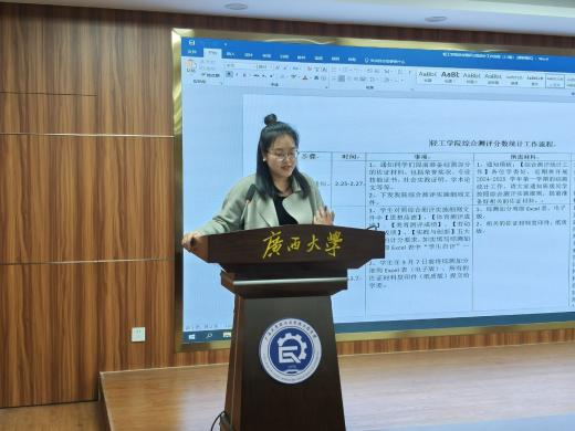 在学院604南华厅会议室举办“博雅轻言”第1期——综测工作推进会。会议由学院辅导员曹羚彬老师与学习部负责人主讲,学院学习部骨干、各班级学习委员参与本次会议。