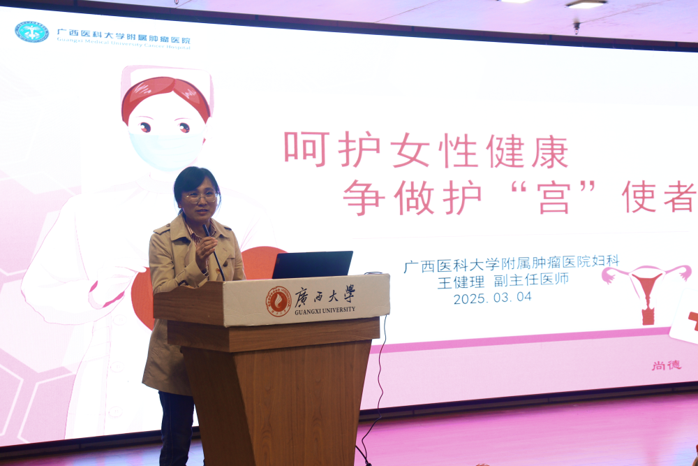 妇科副主任医师王健理围绕“呵护女性健康,争做护‘宫’使者”作专题讲座,强调了接种HPV疫苗和定期宫颈筛查对预防宫颈癌的重要性,呼吁适龄女性积极接种疫苗、按时筛查。