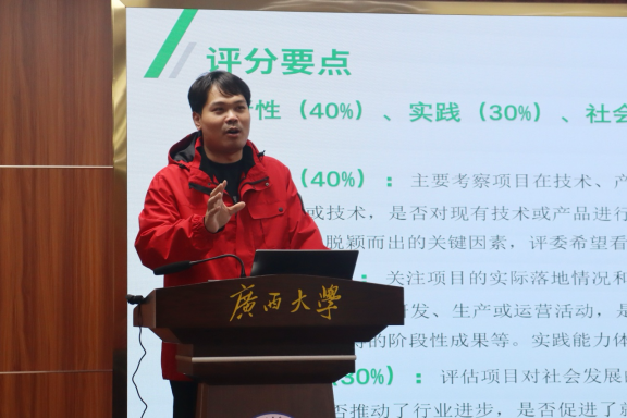 卓能聪老师在分享中首先强调,中国国际大学生创新大赛及同类赛事是教育部认定的A+级学科竞赛,其规模、影响力及社会认可度位居国内高校竞赛前列。他指出,国家层面对此类赛事的持续重视,不仅体现在政策支持和资源倾斜上,更在于其与“健康中国”“乡村振兴”“新工科建设”等国家战略的深度契合。卓老师进一步分析,食品科学与工程学科在赛事中具有天然优势:一方面,食品行业关乎民生需求,具备广泛的社会价值;另一方面,学科交叉性强,可融合生物技术、人工智能、数字化检测等前沿领域,为创新项目提供多维延展空间。