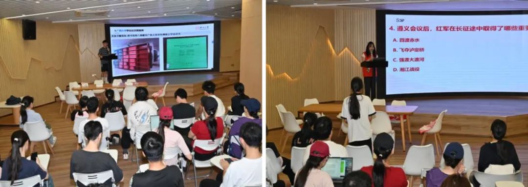 活动的最大亮点当属遵义会议情景剧场。舞台上,“毛泽东”同志铿锵有力的发言,将现场观众带入了那一场决定革命走向的关键时刻,使大家感受到中国共产党在危急关头的坚定抉择与历史担当。在互动环节,学生们纷纷举手发言,分享如何将革命精神融入自己的学习与生活中。