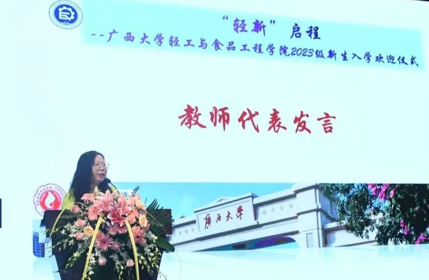 新生代表焦道权代表全体新生向领导、老师问好并表达了衷心的感谢。他表示正是学院的温暖、老师的温情和学术的温度,让他坚定地选择了西大轻工学院继续攀登科研高峰。
