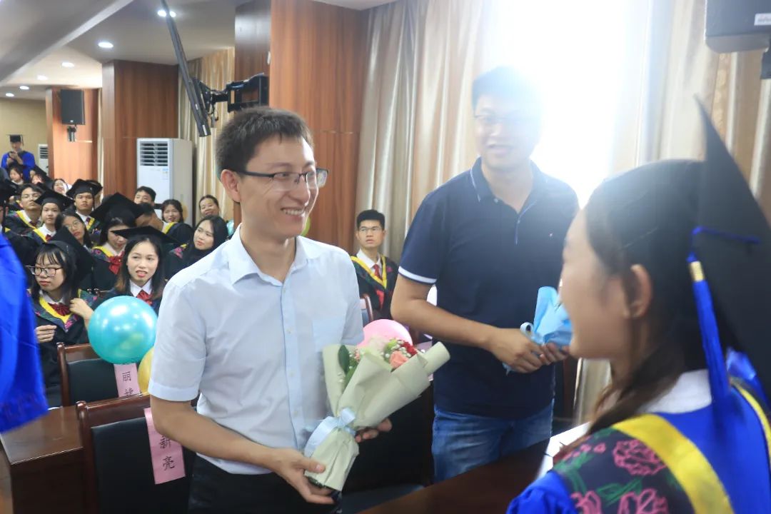 毕业生代表们将一束束鲜花送到老师们手上,感谢亲爱的老师们对他们这几年的辛勤付出,成长离不开老师们的关心关爱和指导,在前行路上,师恩永难忘!