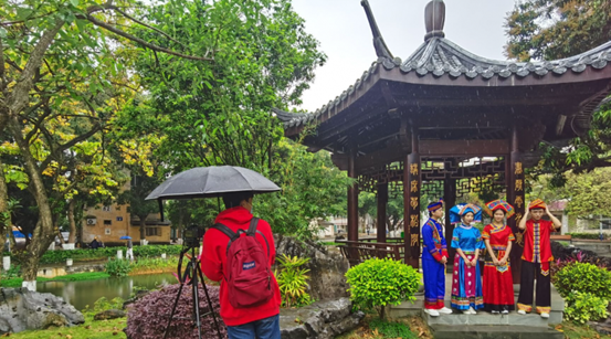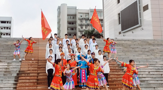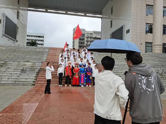 同学与公共管理学院同学组队,共同完成经典民歌《心想唱歌就唱歌》(改编版),欢庆“广西三月三”民歌节。