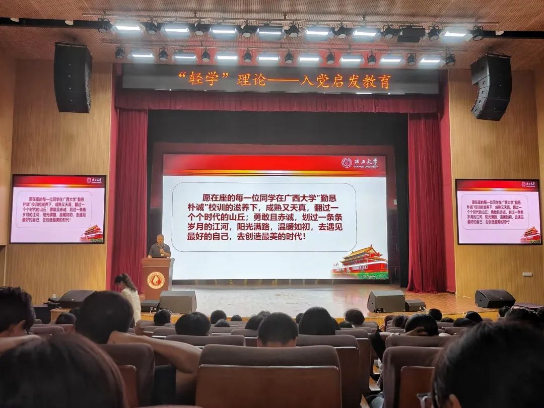 为引导新生端正入党动机、筑牢理想信念之基,提高新生对党的认识,9月14日下午,成人动漫 在大学生活动中心举办了“‘轻’学理论——新生入党启发教育”活动。学院党委书记姜玮以“永远跟党走,奋进新征程”为主题,对全体2023级新生开展入党启蒙教育,共同进行政治理论学习。
