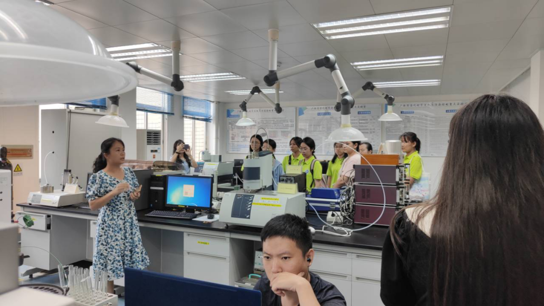 轻化系主任聂双喜教授在学院展厅,带领同学们初步了解学院机构设置、师资力量以及学院近些年的科研成果。聂双喜以“讲好一根甘蔗的故事”为例,向大家讲述学院老师开发产品及其相关技术,让同学们对学院的学科专业和研究领域有了初步认识。最后,聂双喜以学院发展愿景为结尾,呼吁同学们在接下来的大学生活中努力学习,共同为实现学院建设世界一流学科而奋斗。