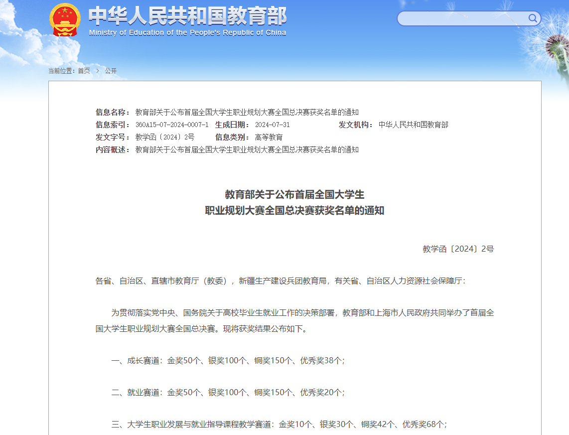 近日,教育部公布了首届全国大学生职业规划大赛全国总决赛获奖名单(教学函〔2024〕2号) 。其中,成人动漫
